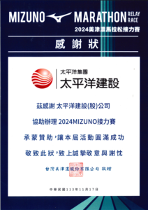 本公司自2023年起與台灣美津濃公司合作,無償贊助翡翠灣週邊土地舉辦「MIZUNO 馬拉松接力賽」,長年深耕北海岸,積極投入社會公益,以行動力挺全民運動。「2024 MIZUNO馬拉松接力賽」於113年11月17日以太平洋翡翠灣第二停車場為主場地舉辦並圓滿落幕,本屆賽事共有432隊報名參賽,參賽選手達3,466人。